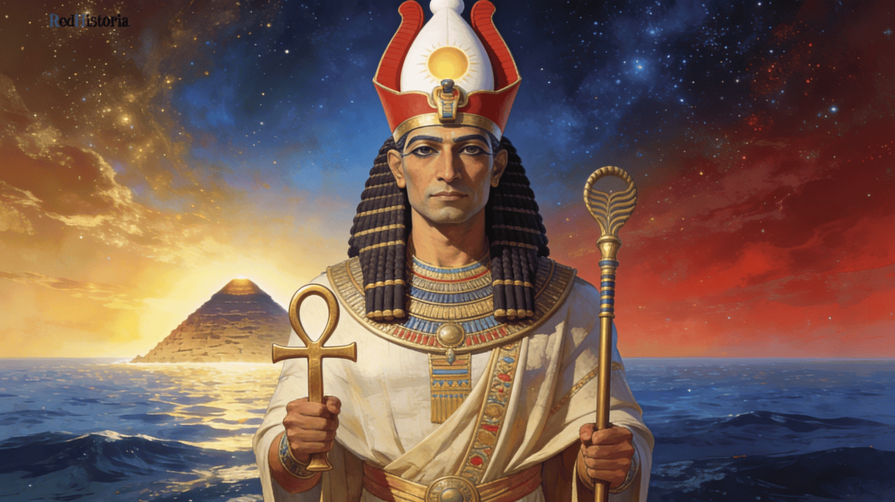 Atum fue el dios creador primordial del Antiguo Egipto. Fue el primero en existir, emergiendo del caos primordial (Nun) y creándose a sí mismo. De su existencia, creó todos los demás dioses y el universo entero.