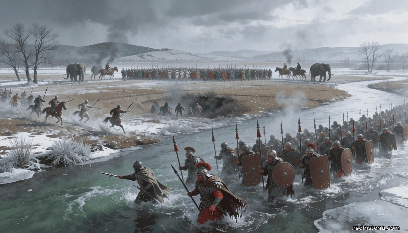 Porque Aníbal los provocó deliberadamente. Envió su caballería numida a atacar el campamento romano al amanecer, antes de que los soldados hubieran comido, confiando en que el cónsul Tiberio Sempronio Longo — agresivo y ansioso por conseguir una victoria antes de que acabara su año consular — ordenaría la persecución inmediata sin esperar a que sus hombres se prepararan. El cálculo fue correcto. Los romanos cruzaron el río helado en ayunas, llegaron al otro lado exhaustos y ateridos, y se encontraron con un ejército cartaginés que llevaba horas calentado y alimentado. La diferencia de condiciones físicas fue uno de los factores decisivos de la batalla.