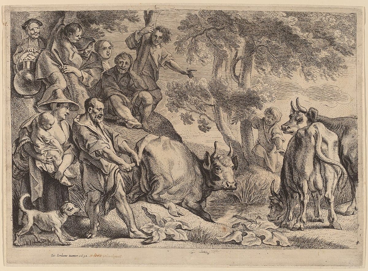Aquí es donde la historia de Caco se vuelve más compleja. No es simplemente una bestia que mata porque sí, muestra inteligencia y astucia. Cuando Hércules, llevando el ganado de Gerión, descansa cerca de su cueva, Caco no simplemente ataca, roba. Específicamente, roba cuatro parejas de bueyes y los arrastra hacia su cueva, pero lo hace de forma ingeniosa: los hace caminar hacia atrás, de manera que las huellas apunten en dirección opuesta. Así, cuando Hércules despierta y ve huellas de ganado apuntando lejos de la cueva, asume que el rebaño se ha alejado en esa dirección.