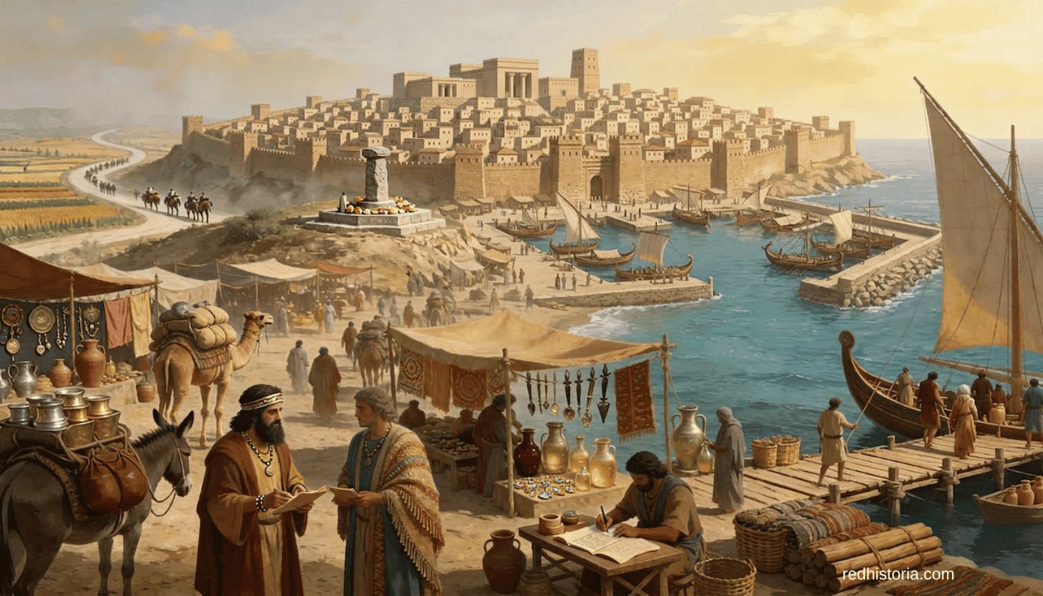 Los cananeos prosperaron no como conquistadores sino como mercaderes sofisticados que controlaban las rutas comerciales del Mediterráneo oriental, negociando entre Egipto, Mesopotamia y el Egeo. Crédito: Red Historia