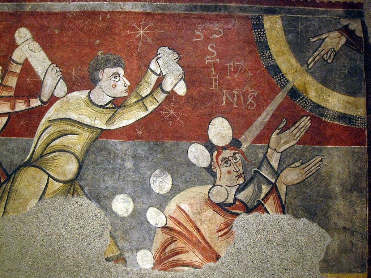 Pintura que representa la lapidación de Esteban, primer mártir cristiano, símbolo del martirio en el cristianismo primitivo y las persecuciones de las primeras comunidades cristianas