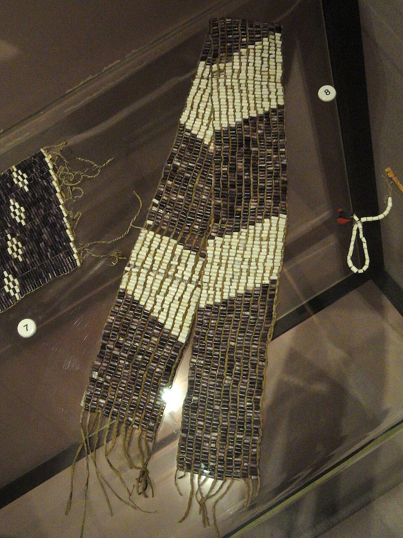 Los wampum iroqueses —cinturones de cuentas de colores— funcionaban como mnemotécnicos que ayudaban a recordar tratados, historias y mensajes. Sin embargo, los propios wampum no «decían» nada: requerían la presencia de alguien que conociera la historia asociada. No eran, por tanto, escritura autónoma sino ayudas para la memoria oral.