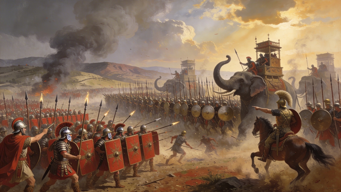 Cuando Pirro invadió Italia en 280 a.C., Roma enfrentó su primer enemigo verdaderamente formidable desde el exterior. No era un pueblo italiano compitiendo por territorio local, era un general helenístico profesional con un ejército entrenado, máquinas de guerra avanzadas y elefantes de guerra que los romanos nunca habían visto. Las primeras batallas fueron desastrosas para Roma. Los romanos fueron derrotados en Heraclea y nuevamente en Asculum. Parecía posible que Roma podría ser conquistada, que su expansión en Italia podría terminar.
