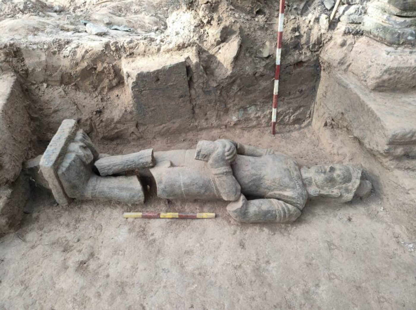 En el templo Banteay Prei en Angkor Wat, descubrieron un guerrero de 700 años de antigüedad hecho de arenisca, que a pesar de estar roto en seis partes, se encuentra en buen estado de conservación y será trasladado a un museo local para su estudio, resguardo y conservación.