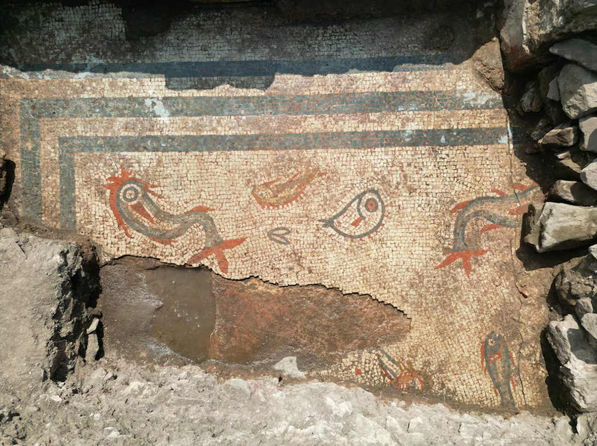 Los arqueólogos se impresionaron al ver que los colores brillantes del mosaico todavía son visibles.