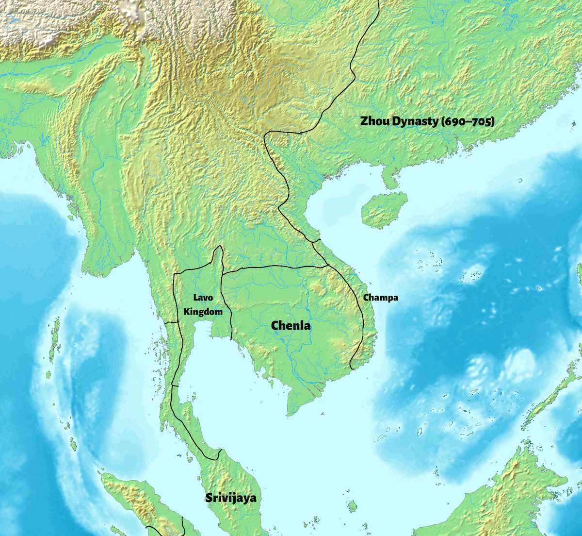 Hacia el siglo VI, Funan fue absorbido por Chenla, un reino que emergió en el curso medio del Mekong. Chenla representa un eslabón crucial entre Funan y el Imperio Jemer, pues fue durante este periodo cuando se consolidaron muchas de las prácticas religiosas y políticas que definirían a los jemeres. Sin embargo, Chenla sufrió una fragmentación en el siglo VIII, dividiéndose en lo que las fuentes chinas llaman «Chenla de Tierra» (al norte) y «Chenla de Agua» (al sur). Esta división creó un vacío de poder que sería aprovechado por un joven príncipe llamado Jayavarman.