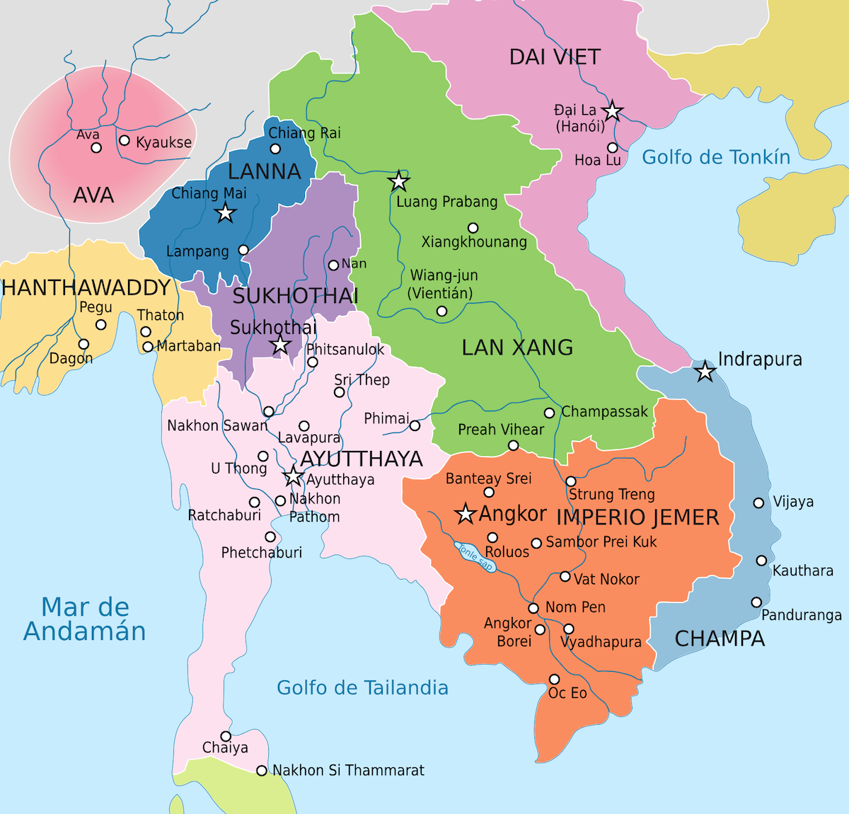 | 1351 | Fundación del reino de Ayutthaya | Emergencia del principal rival siamés del Imperio Jemer |