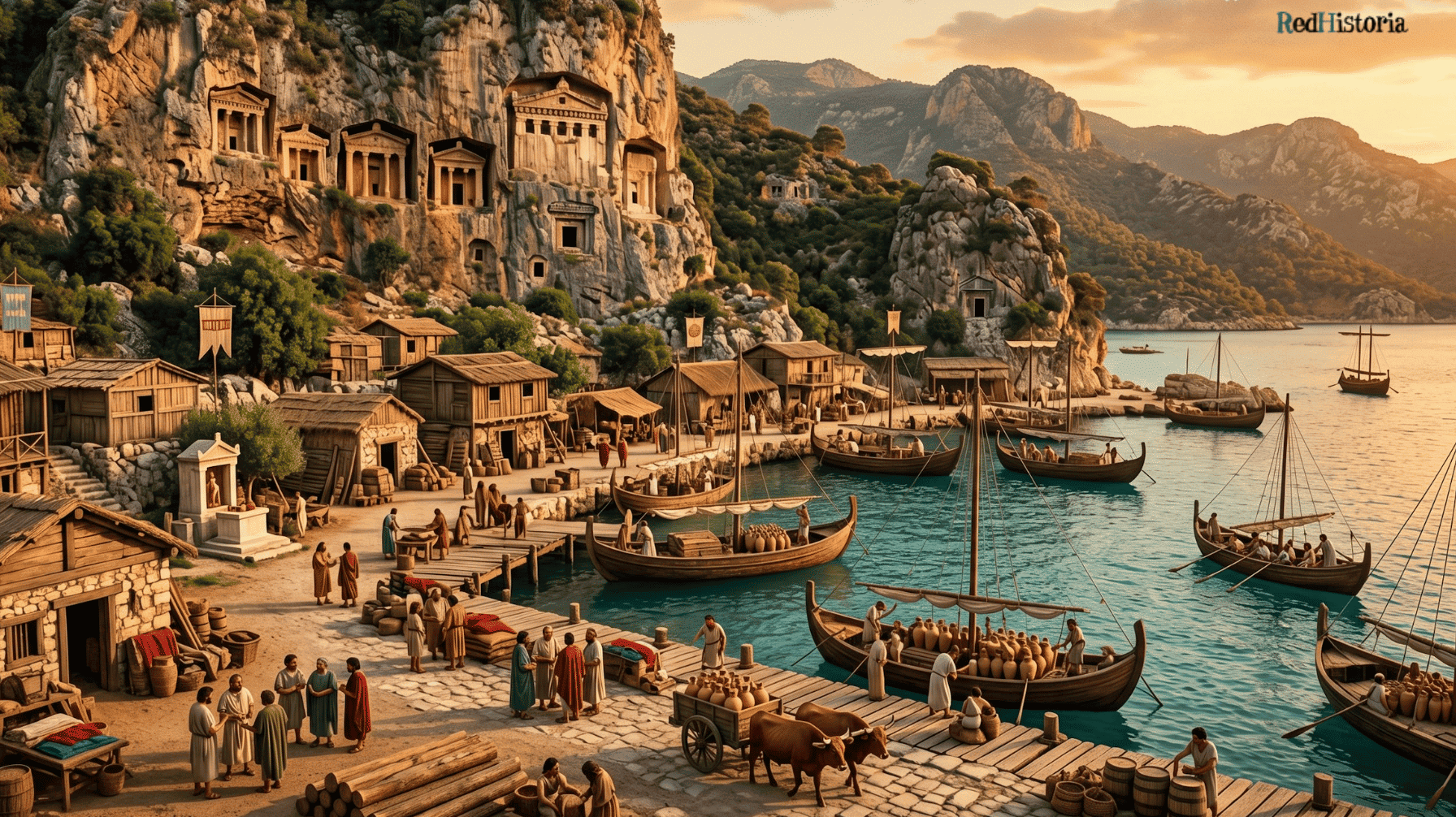 En la costa sudoeste de Anatolia, donde las montañas caen directamente al Mediterráneo en acantilados de piedra caliza, vivió un pueblo que la mayoría de nosotros nunca hemos escuchado nombrar pero cuya influencia llegó a todos los puertos y mercados del mundo antiguo. Los licios fueron marineros y comerciantes sofisticados que durante casi mil años controlaron rutas comerciales cruciales, desarrollaron un alfabeto único, negociaron con potencias imperiales y dejaron una huella cultural tan distintiva que sus tumbas talladas en roca todavía dominan el paisaje turco de hoy. A diferencia de los imperios palaciales hititas o los reinos levantinos centralizados, los licios fueron descentralizados, orientados al mar, comerciales por naturaleza y notablemente cosmopolitas para su época.