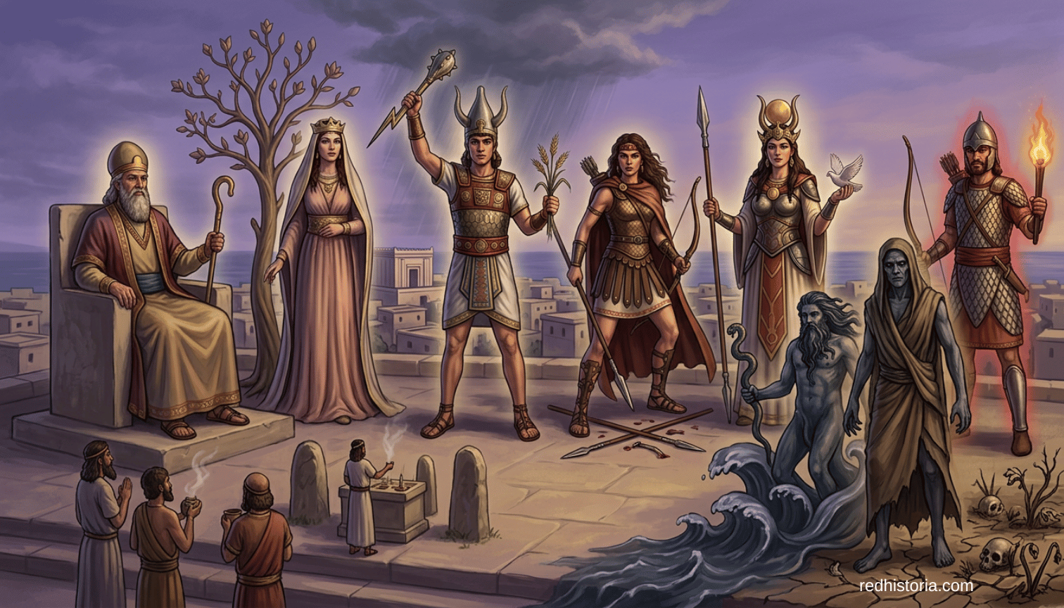 El panteón cananeo presentaba una estructura divina compleja en la que múltiples generaciones de dioses coexistían, a veces en armonía, a veces en conflicto directo. A diferencia de mitologías posteriores donde un único dios supremo gobernaba de forma absoluta, la religión cananea era plural y dinámico, habitado por deidades con poderes específicos, ambiciones particulares y relaciones complejas entre sí.