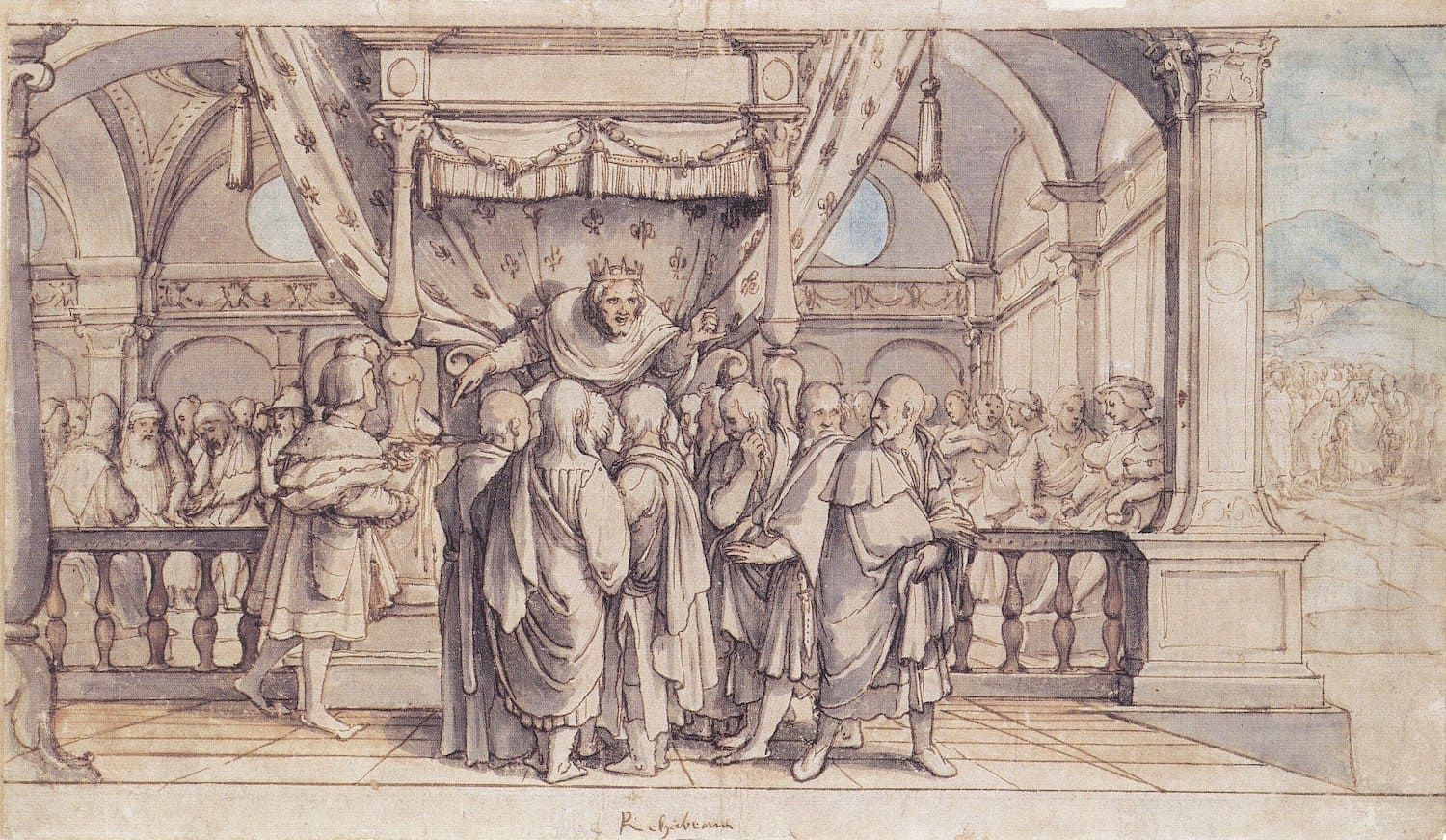 La confrontación en Siquem: Roboam rechaza alivio fiscal al norte y declara gobernar con mayor represión. Su arrogancia política fragmenta el Reino Unificado en 930 a.C. Crédito: Hans Holbein El joven, 1530 / Dominio público
