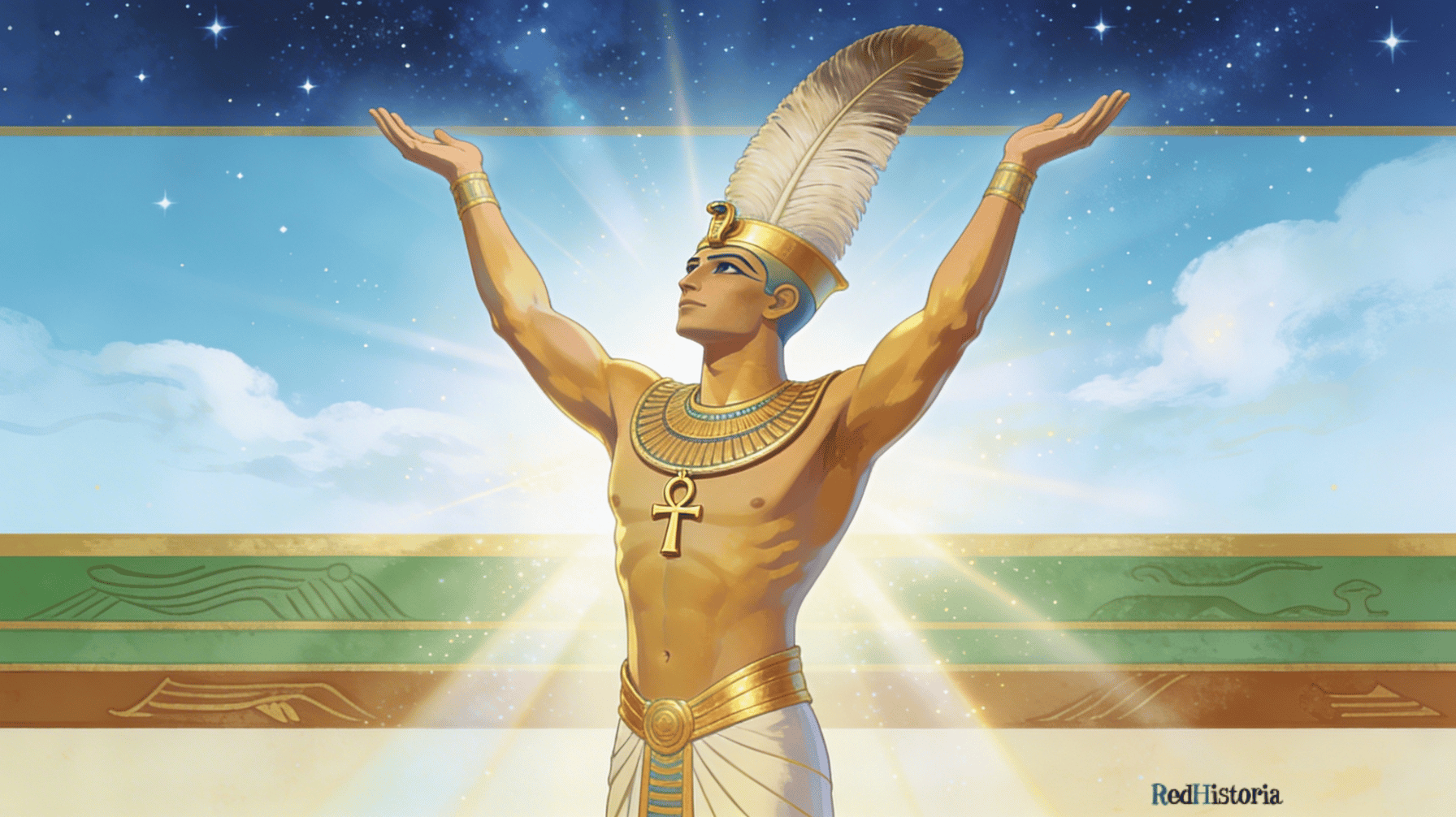 | Shu | Aire, espacio, luz primordial | Hombre esbelta, brazos levantados | Separa y sostiene a Geb/Nut | Invisible pero omnipresente |