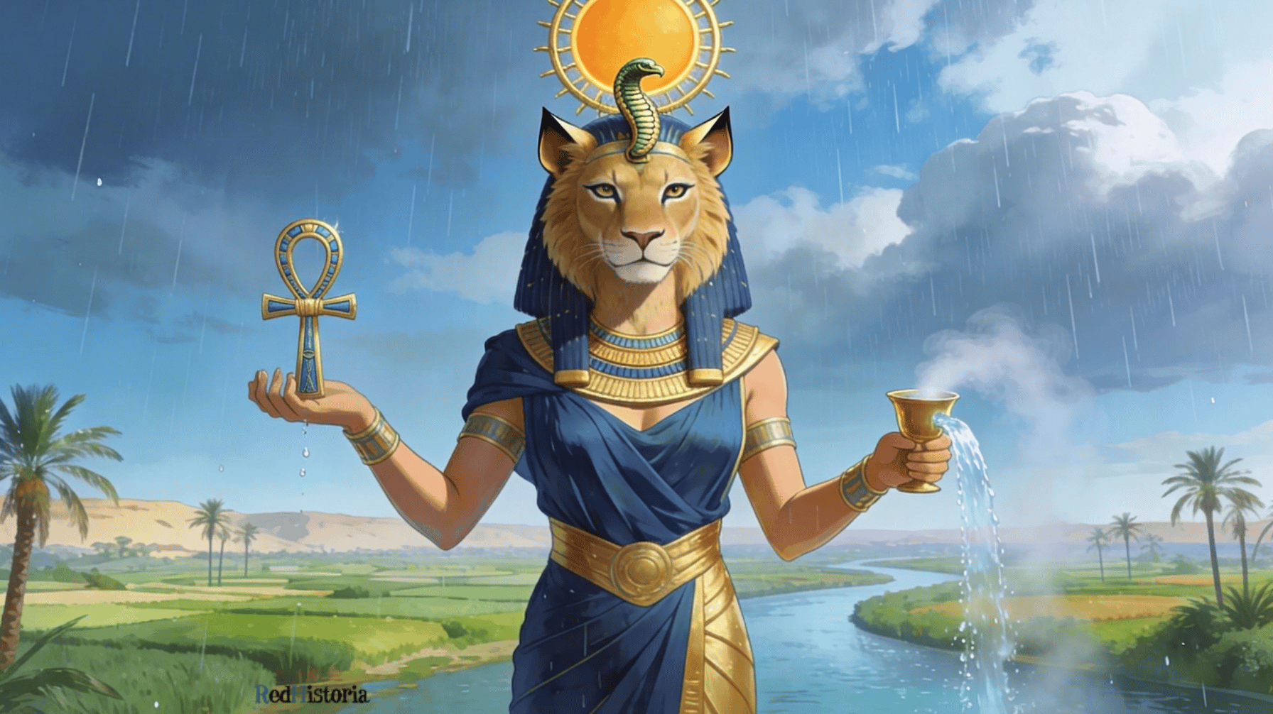 Tefnut es la diosa de la humedad, la fertilidad y la vida generadora en la mitología egipcia. A diferencia de otros dioses que personifican fuerzas pasivas, Tefnut es activamente generadora: ella produce, ella crea, ella sustenta la vida mediante la humedad que fluye. Como compañera divina de Shu (el aire), Tefnut forma la primera pareja creadora, aquella cuya unión hace posible toda existencia posterior. Sin Tefnut, sin la humedad que trae el Nilo cada año, Egipto sería un desierto muerto pero con ella, el Valle del Nilo se convierte en la tierra más fértil del mundo antiguo.