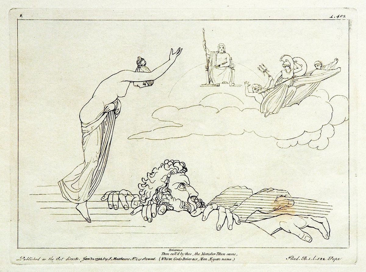 Briareo particularmente recibió honor especial. Cuando otros olímpicos conspiraron para encadenar a Zeus, Tetis convocó a Briareo, cuya mera presencia aterrorizó a los conspiradores haciéndolos desistir. Este episodio demostraba que incluso después de establecer su poder, Zeus dependía de aliados que precedían el orden olímpico.