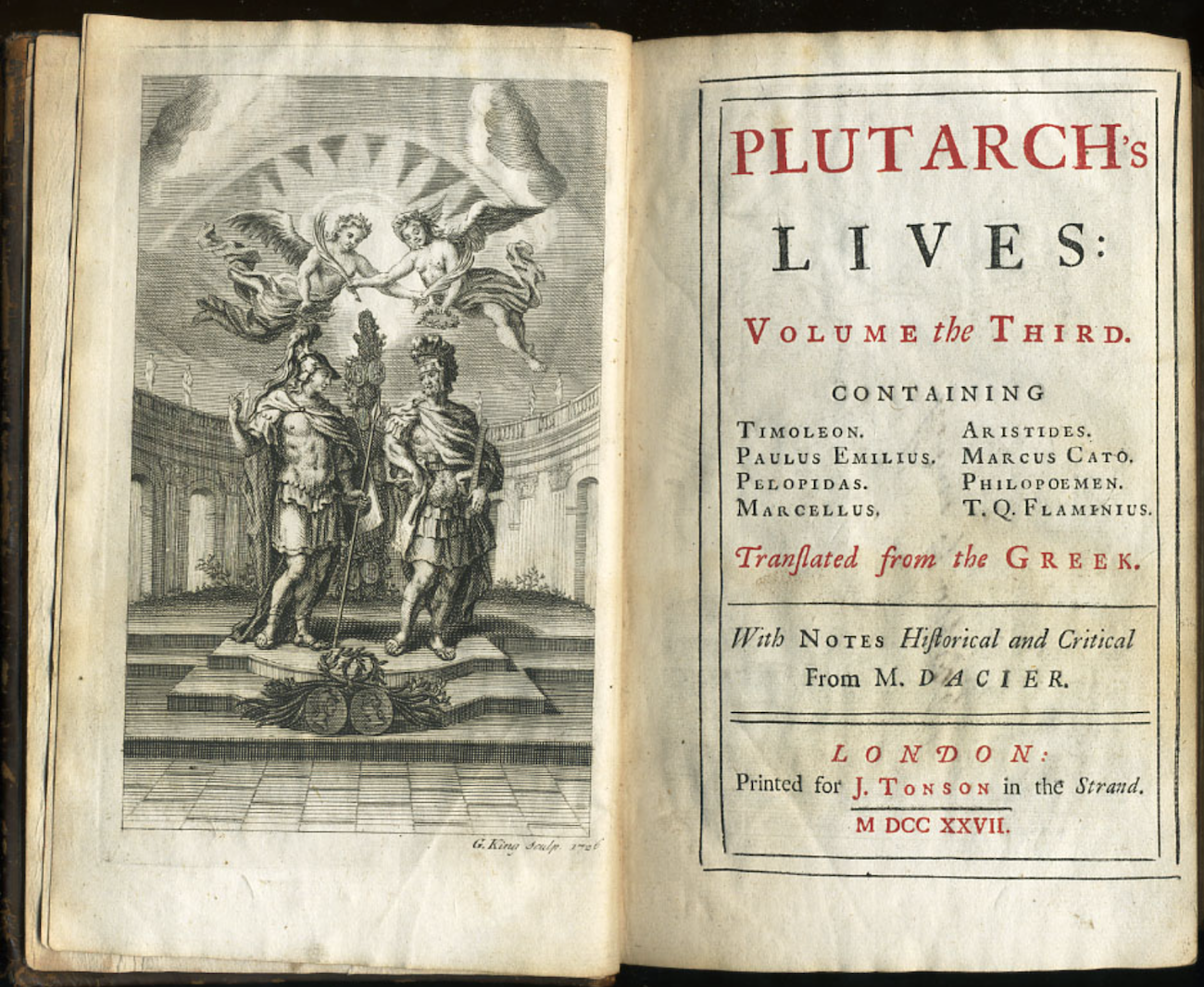 Shakespeare, leyendo la traducción de Plutarco por North, utilizó las Vidas Paralelas como base para obras como Antonia y Cleopatra y Julio César. El enfoque de Shakespeare en el carácter y la motivación psicológica fue influenciado por el método de Plutarco.